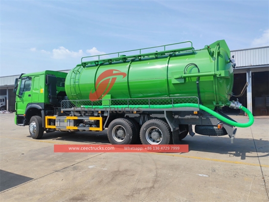 HOWO 6×4 バキュームタンクローリー (真空下水車、下水管吸引車、HOWO 下水車、排水溝清掃車、浄化槽清掃車、浄化槽清掃車とも呼ばれます) 汚水、汚泥、浄化槽、原油などの液体、そして小石やレンガなどの固形物の収集、輸送、排出に使用されます。下水道、汚水溜め、汚水槽、溝などの清掃に適しています。環境衛生分野で広く使用されています。