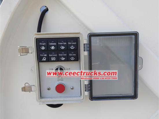 ゴミ圧縮箱の容積は20立方メートルで、円弧状の一体型鋼板溶接技術を採用しています。底板と側板はいずれも厚さ4mmのQ235特殊鋼で、圧縮比は1:3.4で、積み下ろし効率が著しく向上しています。満載時の積み込みサイクル時間は40秒を超えず、積み下ろし時間は45秒を超えません。HOWO 20CBMゴミ圧縮車はPLC自動制御システムを搭載し、全自動運転を実現しています。また、警告灯、緊急停止ボタン、消火器など、各種安全装備を標準装備しており、現代の都市衛生と交通に最適な設備です。