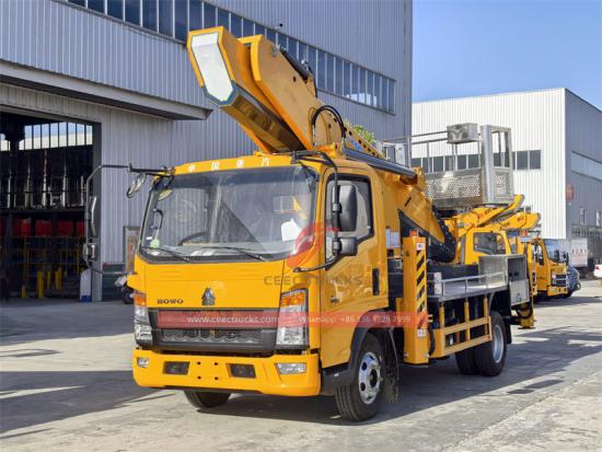 Insulation bucket can be achievedその HOWO 18m aerial platform truck is a professional engineering special truck that integrates excellent technical performance and safety design. Built on the Howo light duty chassis, the truck is equipped with a ISF3.8s3154 engine with a maximum output power of 154 HP and a total vehicle mass of 8 300kg, which is flexible and powerful. The Howo light duty aerial platform truck has a maximum working height of 18 meters and a maximum working radius of 6 meters, and adopts a hydraulic static balance system to ensure stability.
