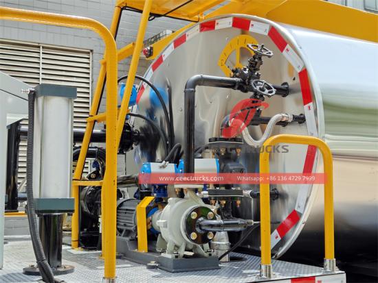 二重断熱タンク技術:3000Lアスファルトタンクは、厚さ80mmのアスベスト断熱層+ステンレス鋼製フロスト外板を採用し、8時間以内の温度低下は12℃以下で、アスファルトの繰り返し加熱回数を大幅に削減し、燃料消費量を削減します。内蔵の波消し板設計により、輸送中のアスファルトの揺れや飛散を防ぎ、安全性を向上させます。