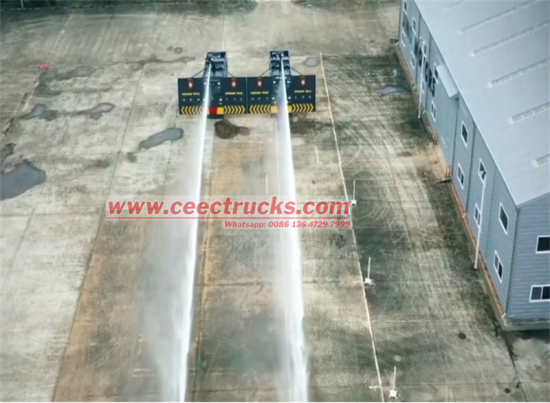 ● 車両全体高圧噴霧:ルーフに6組の高圧泡ノズルを配置し、シャーシに4組の高圧泡ノズルを配置し、作動圧力は1.2MPa、単一ノズル流量は15L/分で、車両の消火死角をカバーします。30秒以内に車両全体を検査します。