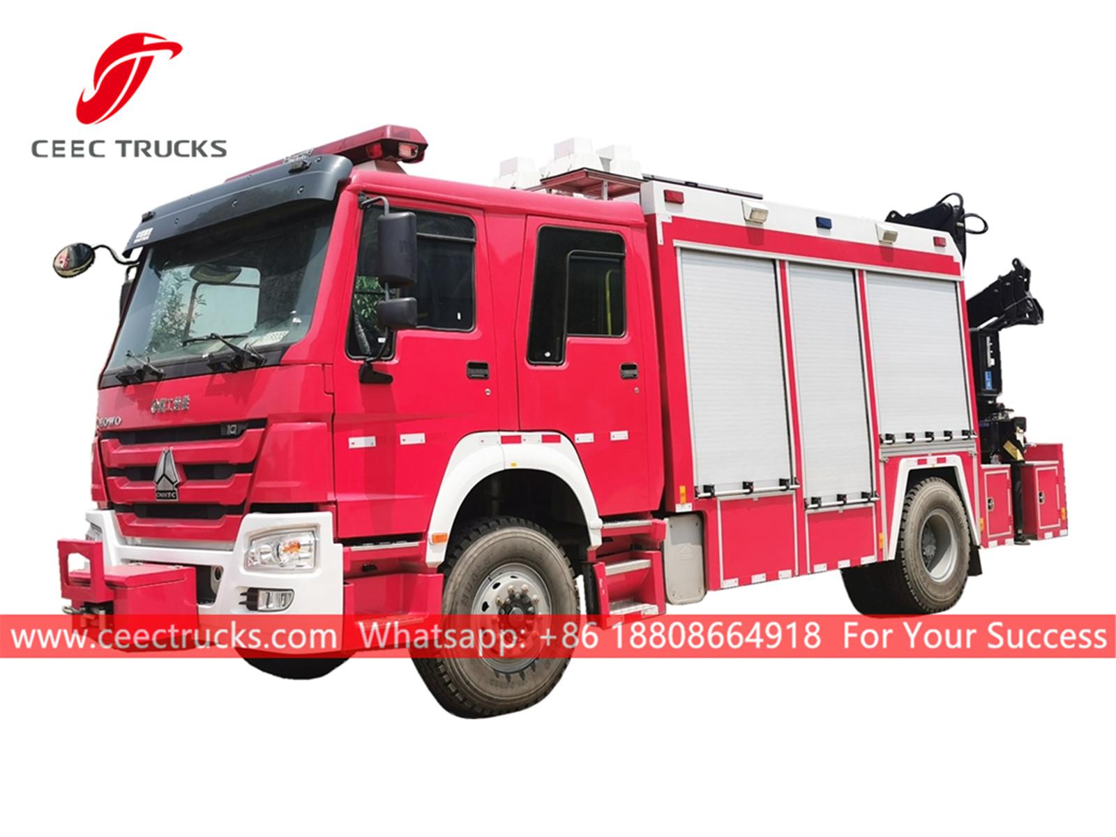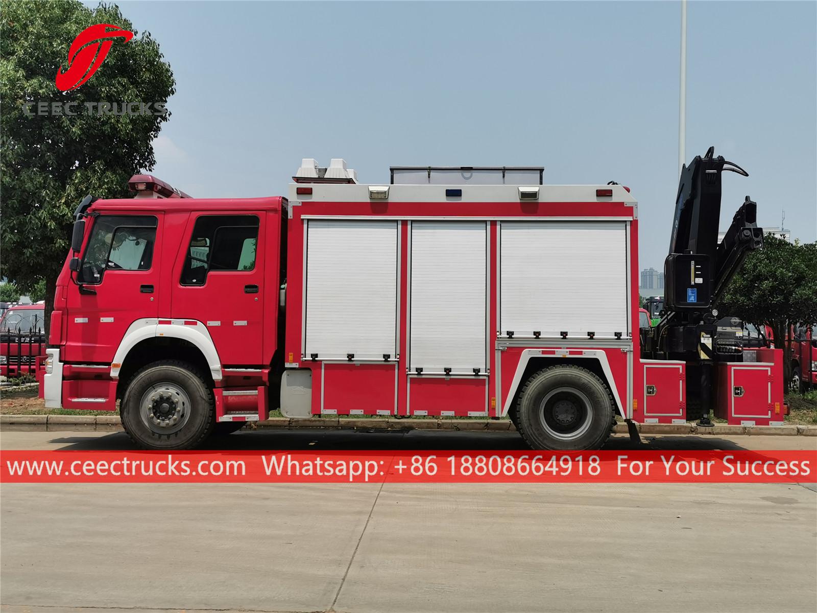 HOWO緊急救助消防車、SINOTRUK HOWO左ハンドルモデル4x2シャーシ、6シフトマニュアルギアボックス、SINOTRUK 310HPディーゼルエンジンを使用。照明システムとクレーンを装備ペイントやロゴなどはご要望に応じて異なります。