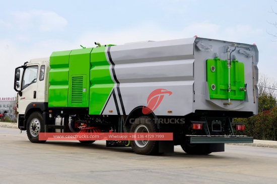 HOWO ストリートスイーパー (別名道路清掃トラック、新品道路清掃トラック、トラック搭載型清掃車、 高品質 道路清掃車、高速道路清掃車 HOWO、道路清掃車メーカー) は コミュニティ、都市、高速道路、建設現場、高架道路、橋、広場、空港、およびアスファルトコンクリートとセメントコンクリートの路面を持つドックでの日常的な清掃用に設計されています。