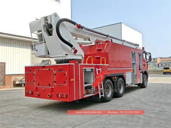高所伸縮式タレット、ブーム、その他の関連構造部品を搭載したHOWO水泡消火設備は、当社の先進的な製造技術を駆使して製造されており、効率性と信頼性に優れ、国際的に先進的な水準を誇っています。HOWO高所消防は、コンパクトな構造、小型、操作調整範囲の広さ、柔軟な操作性を備え、高所および低所の救助・消火機能を備えています。救助消防車、高所ジェット消防車などの機能を統合した多機能消防設備です。
