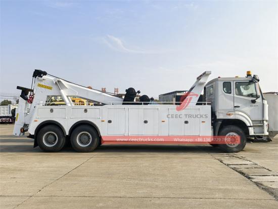 この重い duty wrecker, built by CEEC Trucks Group, utilizes the Howo NX cabin 6 x 4 drive chassis and is equipped with a powerful Howo WP10.340E22 diesel engine (3 4 0 HP /1250N . m of torque) and an HW1 9710 10 -speed transmission. Combined with an HF9-ton front axle and HC16-ton rear axle, it ensures exceptional power, load-bearing capacity, and reliability. It incorporates two 1 2 ton s hydraulic winches, resulting in an impressive rated towing capacity of 30 tons, making it ideal for handling accidents involving large trucks, buses, and construction machinery.