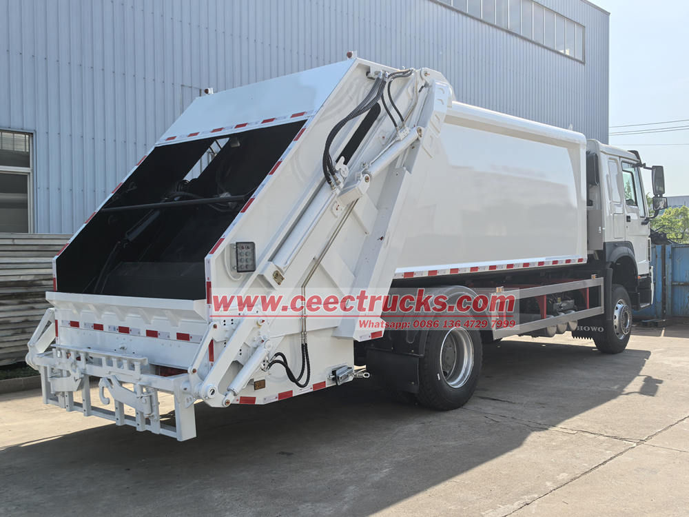 HOWO リアローダーゴミ収集車の動作原理は独創的で効率的です。