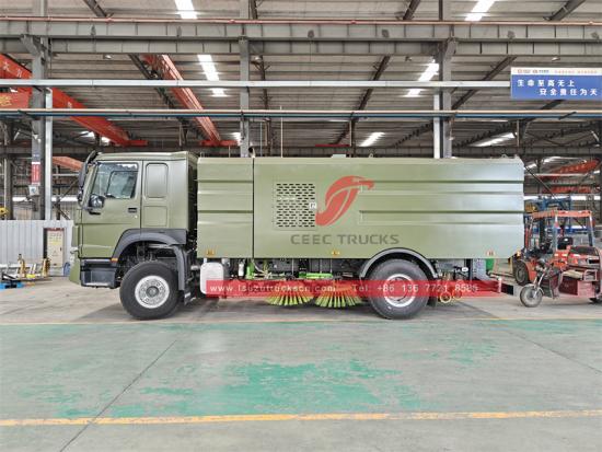 Howo スイーパーは、オプションの後方警報システムとカメラ、イタリア/アメリカ製油圧モーター、そしてフロントスノープラウにより、安全性と汎用性をさらに高めています。さらに、工場出荷時に装備された油圧システム、安全ガード、回転灯、作業灯により、快適で安全な操作を実現しています。Howo 道路清掃トラックには、英語の取扱説明書、スペアパーツリスト、そして必要な輸出書類がすべて付属しており、包括的なカスタマーサポートと安心を提供します。