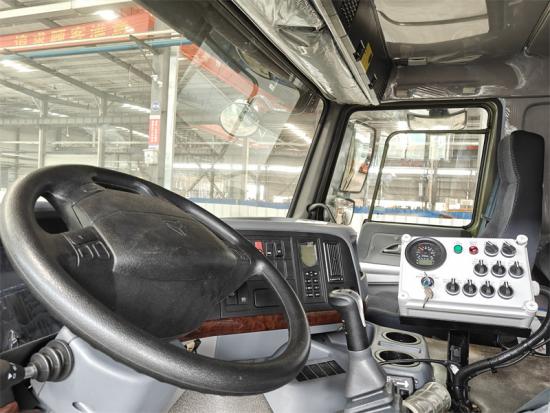 Howo社製高級キャブ、エアコン、2人掛け、フォワードコントロール、全鋼溶接構造。手動チルト、機械式サスペンション |