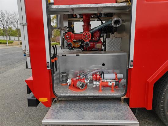 消防ポンプはPTO駆動で、圧力範囲は1.6~2.5MPa、流量は80~120kg/sです。消防砲は噴射速度60~100kg/s、射程範囲は40~60メートルで、様々な火災状況に効果的に対応できます。