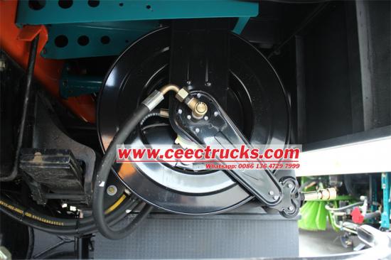 Large capacity,powerful engineそのいすゞ 10000リットルトラック搭載型真空道路清掃車 新型FTR GIGA 4Xキャブシャーシをベースに改造され、ホイールベースは4500mm。パワフルな4HK1-TC60 205馬力ディーゼルエンジンを搭載し、スムーズな変速を実現するMLD 6速トランスミッションと組み合わせられています。3立方メートルの洗浄水タンクと7立方メートルのダストビンを備え、東風カミンズ製77馬力補助モーター、中国製で有名なファン、ドイツ製PINFL PF36高圧水ポンプ、杭州威龍製60/90低圧水ポンプを搭載しています。清掃システム、散水システム、油圧システム、DC24V PLC電子制御システムを統合し、効率的でインテリジェントな清掃を実現し、空港などの大規模な会場に適しています。