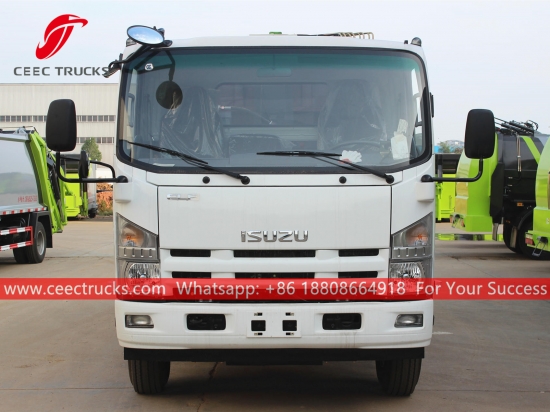 ISUZU 10cbmゴミ圧縮車。シャーシにはISUZU 190馬力ディーゼルエンジンとMLD 6速トランスミッションを搭載。PLC制御ボックスで操作も簡単。塗装とロゴはすべてお客様のご要望に合わせて製作いたします。
