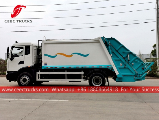 ISUZU 12cbmゴミ圧縮トラック。シャーシにはISUZU 205HPディーゼルエンジンとMLD 6速トランスミッションを搭載。PLC制御ボックスで操作も簡単。塗装とロゴはすべてお客様のご要望に応じて変更いたします。
