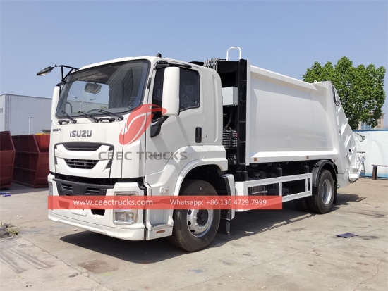 ISUZU FTR 4x2ゴミ圧縮車、16CBM、アフリカ向け輸出。ISUZU 4HK1エンジン、205馬力、MLD 6速マニュアルギアボックス搭載で操作も簡単。最高品質のISUZUモデルシャーシ、16CBMゴミ圧縮車は、アフリカで広く販売されています。