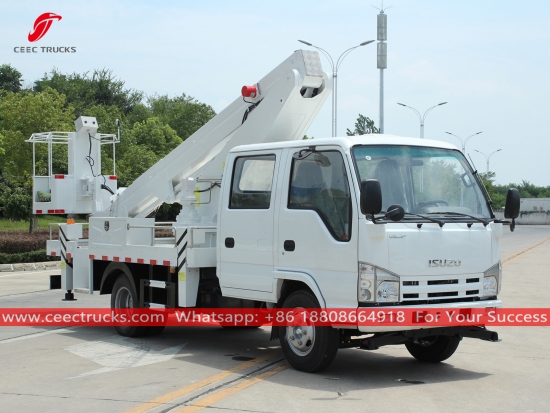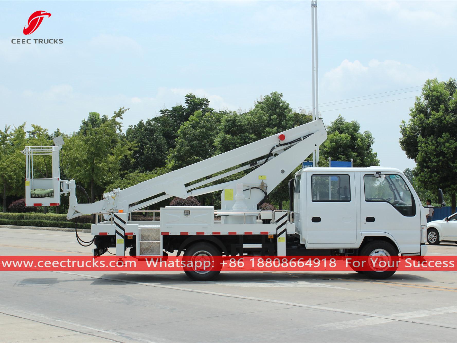 16mバケットクレーン付きトラック、ISUZU 100P 4x2シャーシ、5速マニュアルギアボックス、ISUZU 98馬力ディーゼルエンジン。塗装とロゴはご要望に応じて変更します。お客様対応の言語コントロールボックス。