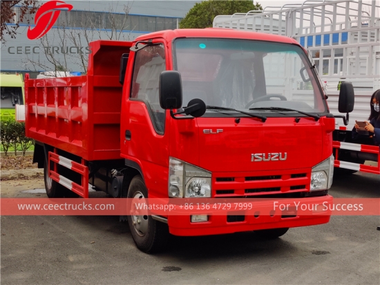 ISUZU 4x2ドライブダンプトラック、オリジナルISUZU ELFキャビン4輪トラックシャーシ、MSB 5速マニュアルギアボックス、ISUZU 130馬力ディーゼルエンジン、高強度鋼製ダンプボディ、HYVAまたは国産油圧リフター(オプション)搭載。塗装とロゴはすべてお客様のご要望に応じて変更いたします。