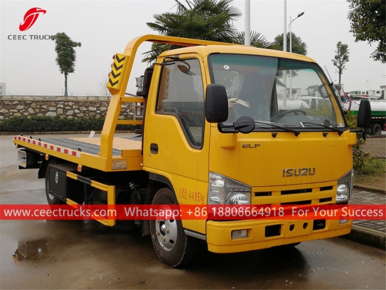 ISUZU ロードレッカートラック、ISUZU 4x2 シャーシ、手動 5 シフトマニュアルギアボックス、ISUZU 115HP ディーゼルエンジン、油圧シリンダー作動の長いプラットフォーム、塗装およびロゴは要件によって異なります。