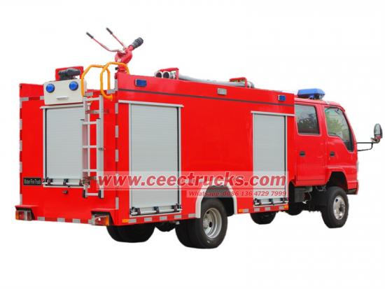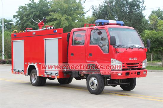 4WD offroad type for tough road condition新しくデザインされたいすゞミニ型消防車いすゞトラックのシャーシII型、SS304製水タンク、水消火ポンプ、水消火砲、パイプライン、計器回路システムなどの部品で構成されています。いすゞ消防車アルミ合金製の後部クライミングラダー(取り外し可能)が装備されており、ポンプ室は車両後部にあります。水タンク本体はステンレス鋼304材で製造され、自動溶接され、内部は防錆コーティングされています。いすゞ 水タンク消防車容量は3立方メートル(800ガロン)です。流量1800LPM@10BARの消火ポンプCB0/30型と、流量1200LPM@0.8BARの消火モニターが装備されています。その ISUZU消防車は、2列キャブ、4ドア、2列キャブ(6人乗り)、後部座席は空気呼吸器用のSCBA(自給式空気呼吸器)を装備しており、集団消防活動に適しています。ISUZU 4KH1CN6LBディーゼルエンジンは、全電子制御精密制御と高圧コモンレールを採用し、出力向上、オイル消費量低減、オイル適合性向上、低温始動性向上を実現しています。耐腐食性に優れたタンクも備えています。