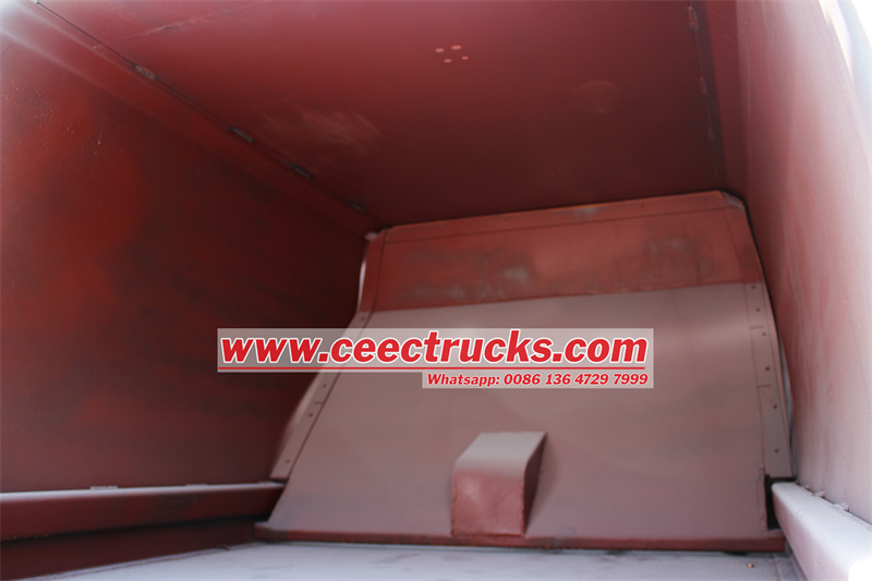 Rear tilting device for 240L and 1100L binsいすゞ6輪市営リアローダーゴミ収集車とも呼ばれるISUZU NKR 6cbm ゴミ圧縮機付きゴミ収集車、 どれの強力な専門家ですゴミ処理車。CEEC TRUCKSが製造するIsuzu 6cbmリアローダーコンパクタートラックは、Isuzu 4x2 ELF 600Pシャーシ、Isuzu 120HP 4KH1ディーゼルエンジン、ユーロ6適合2999ml排気量、3360mmホイールベース、2+1シート(室内エアコン付き)、ABS付きエアブレーキシステム、直列4気筒4ストロークディーゼルエンジン、方向指示器を搭載しています。このトラックは、キャブ内のCAN-BUS電気制御、油圧ジョイスティック、テールゲート内のCAN-BUS電気制御ボックスを含む3つの操作モードを備えています。