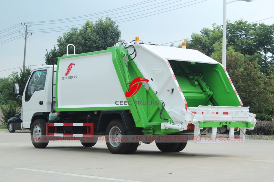 ISUZU バックローディングコンパクタートラック (別名 ゴミ圧縮機、ISUZU リアローダー、新品 ISUZU 廃棄物圧縮トラック、ISUZU 6 輪ゴミ圧縮トラック、ISUZU 4 x 2 ゴミ収集トラック、ゴミ圧縮機 中国のメーカー) は あらゆる都市、大きな駅、港や埠頭、空港、工業・鉱業企業や軍事部隊などの人口密集地域などの生活エリアでの日常的なゴミ輸送用に設計されています。