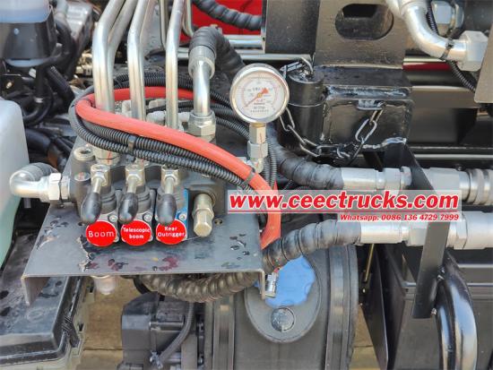 いすゞ7cbmフックリフトのフックアームシステムは、主にフックアーム、油圧シリンダー、コントロールバルブ、接続装置などで構成されています。フックアームは高強度合金鋼材で作られており、ゴミ容器の重量や操作中の様々な力に耐える十分な強度と剛性を備えています。油圧シリンダーは、フックアームが持ち上げ、回転などの動作を完了するために必要な動力を提供します。