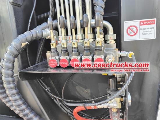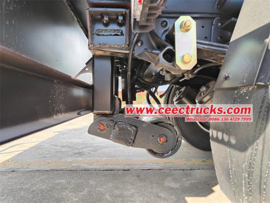フックリフト設計も、このゴミ収集車のもう一つの特長です。この設計により、ゴミ収集車への積み下ろし作業がより簡単かつ迅速になります。フックアームの昇降と回転により、ゴミ箱の交換と配置が素早く行えるため、作業効率が大幅に向上します。さらに、この設計により、車両の日常的な清掃やメンテナンスが容易になり、車両の耐用年数が延長されます。