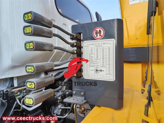 このトラックの心臓部は、XCMG SQS125-4ブームクレーンです。このクレーンは、頑丈なブーム構造と高度な油圧システムを備え、比類のないリーチ、精度、そして荷役能力を実現します。重量物を軽々と持ち上げる能力に優れており、精度と強度が重要となる建設現場、物流業務、産業用途に欠かせないツールとなっています。