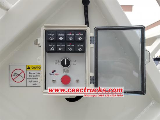 上部構造には、側面厚4mm、底厚5mmの10立方メートルの炭素鋼製圧縮廃棄物タンクが採用されており、耐久性と大容量を誇ります。湾曲した圧縮機本体には、中国の高品質ブランドである合肥万業の油圧シリンダーが搭載されており、強力で信頼性の高い圧縮を実現します。