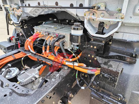 いすゞEVM600電動シャシー車両のバッテリーパックには、CATLが開発した最新の一体型リン酸鉄リチウムバッテリーパック(容量106.95kWh)が採用されており、フレームの両側に搭載されています。従来のバッテリーパックと比較して、新型車に採用されたシングルパックバッテリーは、ボックス内の高圧ワイヤーハーネスとブラケットの数を減らすことができ、車両全体の軽量化に貢献しています。また、WLTC定速走行モードでの航続距離は480kmに達し、トラックドライバーの日常業務における航続距離の要件を満たしています。
