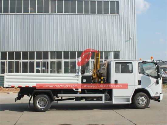 いすゞエルフ190馬力貨物トラック搭載クレーンは、パワフルで優れた設計のトラックで、輸送と吊り上げ作業において絶対的な優位性を持っています。いすゞクレーン車は、190馬力の強力なISUZUブランドのディーゼルエンジンを搭載し、迅速な作業のニーズを満たすことができます。5人乗りのダブルキャビンにはエアコンが装備されており、運転手と作業員に快適な運転環境を提供します。いすゞNPRダブルキャビンクレーン車の上部には、最大吊り上げ能力5トン、最大吊り上げ高さ11m、520°回転の折りたたみ式アームクレーンが装備されています。