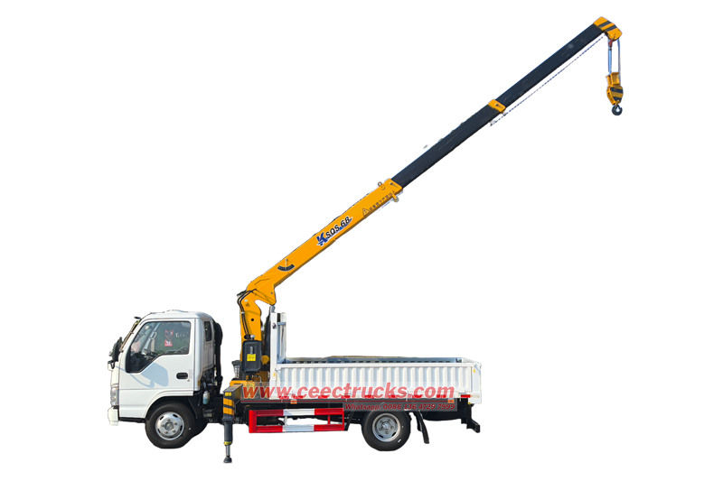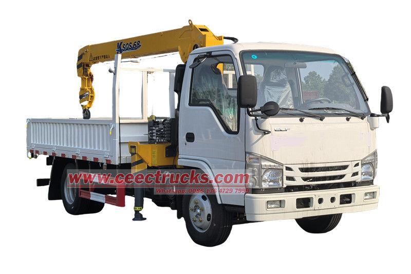 Isuzu ELF 3.2 トン トラック ローダー クレーンは、Isuzu ELF トラック (3.2 トン クレーン リフト付き)、伸縮式クレーン トラック、サービス ブーム トラック、伸縮式ブーム トラック搭載クレーンなどとも呼ばれます。 この車両は、Isuzu 100P シャーシを改造し、Isuzu 4KH1CN6LB 120HP エンジンを搭載し、パワフルで、MSB 5 速トランスミッションと組み合わせ、シフトがスムーズです。車体後部には SQS-68 クレーンが装備されており、大きな吊り上げ能力とリーチを備えています。下部には 3000x2100x450mm の貨物ボックスがあり、クレーンのフックで吊り上げた重い物を簡単に運ぶことができます。