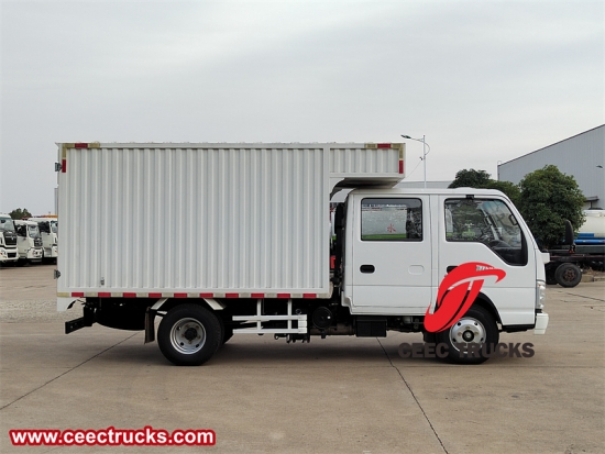 いすゞNPRダブルキャブの優れた特徴の一つは、その多様な貨物管理能力です。3.245メートルの荷室長と、広くて頑丈な荷室を備え、商品、機器、資材の輸送に十分なスペースを提供します。一方、バンモデルは、様々なビジネスニーズに対応できるよう、カスタマイズ可能な収納ソリューションを備えています。
