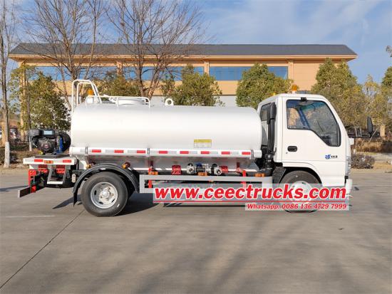 中東欧 のIsuzu ELF 100P散水トラックは、散水作業に使用されます。これはIsuzu NKR 100Pライトシャーシに改造され、4KH1 120HPエンジン、2999mlの排気量、Isuzu MSB 5速ギアボックスを備えています。トラックには5000Lの楕円形のカーボン水タンクがあり、65QZF-40/50ウォーターポンプ、後部は燃料超高圧洗浄機、前部スプレー、 これにより、車両が効率的に散水作業を実行できるようになります。