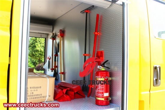 • 消火器: この消火車には粉末消火器、泡消火器などさまざまな種類の消火器が搭載されており、初期段階での迅速な消火が可能になり、消防士の時間をさらに稼ぐことができます。