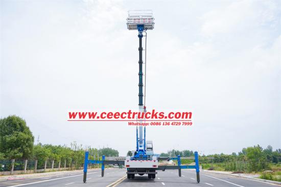 Remote control, easy to operateISUZU FTR 45m高所作業車は、優れた技術性能と安全設計を融合したプロフェッショナルエンジニアリングの特殊トラックです。 いすゞ新型ギガFTRシャーシをベースに、最高出力205馬力の4HK1-TC60エンジンを搭載し、車両総質量は18,000kgです。いすゞFTR高所作業車は、最大作業高度45メートル、地上高27メートルのプラットフォーム、最大作業半径7メートルを誇り、油圧式スタティックバランスシステムにより安定性を確保しています。
