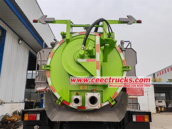 汚水吸引タンク: このトラックには、8立方メートルの容量を持つ汚水吸引タンクが搭載されています。このタンクは、下水道、排水システム、産業廃棄物処理場など、さまざまな発生源から汚水やその他の廃棄物を効率的に収集・輸送するように設計されています。
