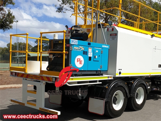 しかし、このトラックのハイライトは、12,000リットルの潤滑システムです。この高度なシステムは、オイル、グリース、その他の液体を含む様々な種類の潤滑剤を、幅広い機械や装置に効率的に供給するように設計されています。このシステムは、特定の潤滑ニーズに合わせて調整された複数のポンプとタンクを備えており、正確かつ精密な供給を可能にします。