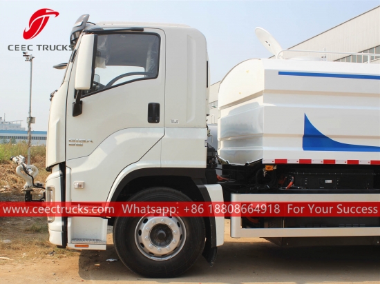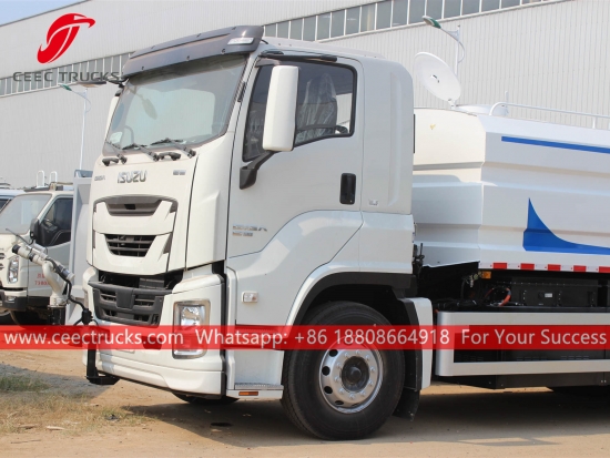 いすゞギガ 16,000L 防塵給水車。いすゞギガ左ハンドルシャーシ、ZF製16段マニュアルギアボックス、いすゞ製380馬力ディーゼルエンジン、有名ブランドのウォーターポンプ、オプションでフロント、ミドル、リア散水ノズルを装備。塗装とロゴはご要望に応じて変更いたします。