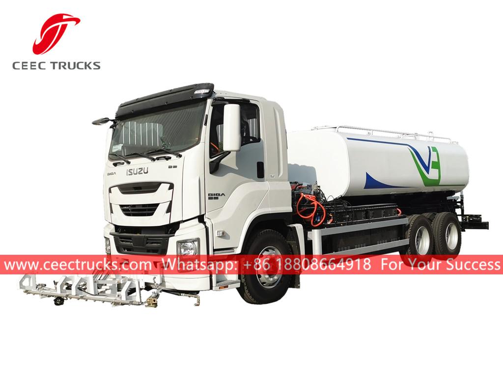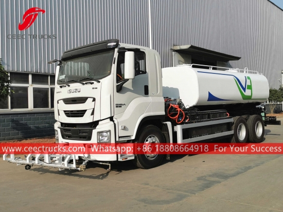 いすゞギガ 16,000L 給水車。いすゞギガ左ハンドルシャーシ、ZF製16段マニュアルギアボックス、いすゞ製380馬力ディーゼルエンジン、有名ブランドのウォーターポンプ、オプションでフロント、ミドル、リア散水ノズルを装備。塗装とロゴはご要望に応じて変更いたします。