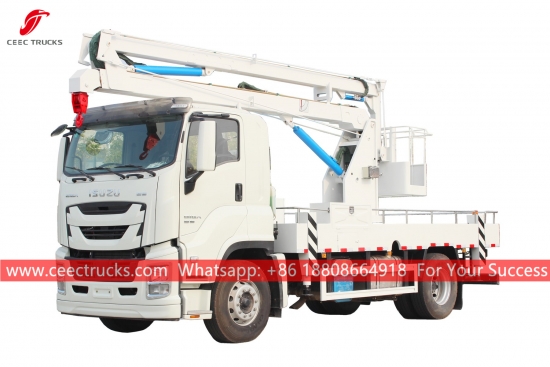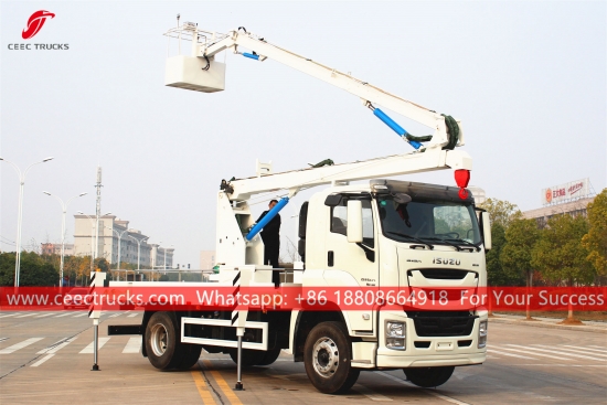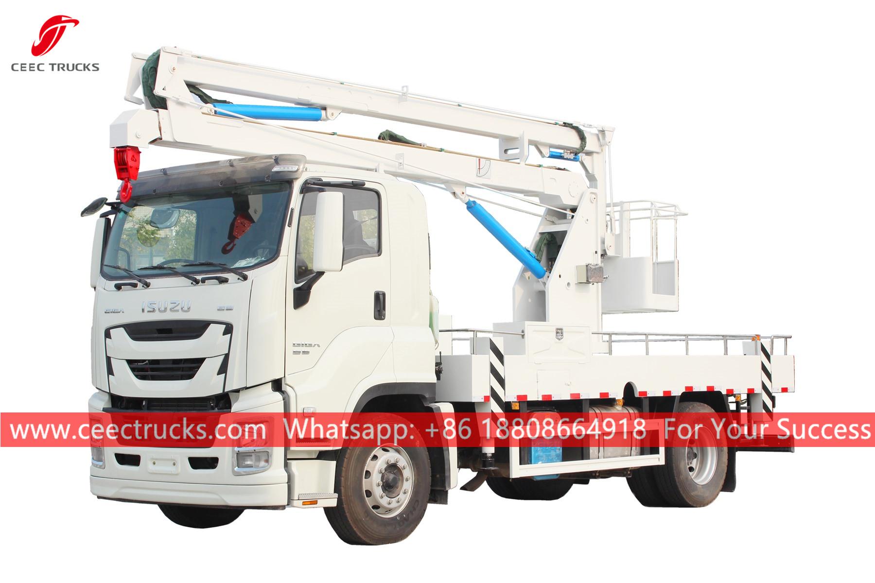 ISUZU 16mバケットクレーン付きトラック、ISUZU GIGA 左ハンドル4x2シャーシ、FAST 12段マニュアルギアボックス、ISUZU ヘビーデューティー380馬力ディーゼルエンジン。塗装とロゴはご要望に応じて変更いたします。お客様専用の言語コントロールボックス。