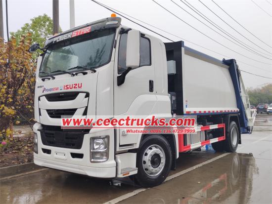 カスタマイズされた新品のISUZU GIGA 5X 4x2 LHDゴミ収集車搭載型圧縮機を販売します。ISUZUゴミ収集車の工場で生産され、最高品質のリアローダーゴミ圧縮機トラックを生産します。4x2ドライブGIGA 5X LHDクラシックキャビントラックシャーシ、240HPのISUZU 6HK1-TCディーゼルエンジン、前進8速と後進1速のFASTマニュアル8シフトギアボックス、カスタマイズされた湾曲した形状のボディ、10トンを超える積載重量の16CBMゴミ圧縮機タンクボディ容量、CAN-BUS電気および油圧バルブ制御システム。