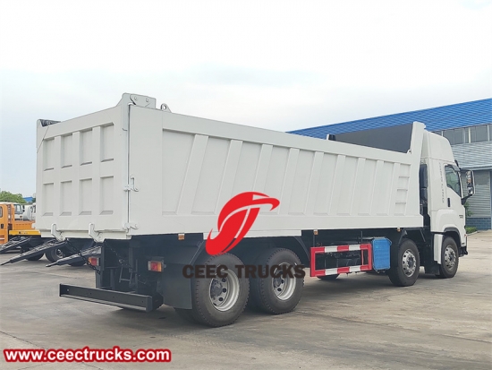 新設計のISUZU GIGAダンプトラック、新型ISUZU GIGAキャビン、ISUZU純正420馬力ディーゼルエンジン(排気量15,680ml)、FAST 12速マニュアルトランスミッションを搭載。荷台は高強度炭素鋼製で、HYVAまたは中国で有名な油圧式リフティングシリンダーを採用。リフティングモードはT型とF型から選択可能。