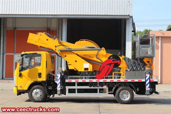 Isuzu KV100の際立った特徴の一つは、車両の実用性を新たな高みへと引き上げる多用途ツールである高所作業プラットフォームです。高張力鋼製の高所作業プラットフォームは、堅牢な構造と強力な耐荷重性を備えています。作業のニーズに合わせて伸縮、旋回、上昇が可能で、最大作業高度は20メートルに達し、さまざまなシーンの高所作業のニーズに対応します。強力な昇降機構と安定したプラットフォームにより、 いすゞKV100軽高所作業車 作業員が高所へ容易かつ安全にアクセスできる高所作業プラットフォーム。送電線の保守作業から都市部における建設工事まで、この高所作業プラットフォームは、いすゞKV100バケットトラックを、比類のない柔軟性と適応性を備えたモバイルワークスペースへと変貌させます。同時に、横転防止装置、過負荷保護装置、緊急停止ボタンなど、包括的な安全保護装置を備え、高所作業中のオペレーターの安全を確保します。