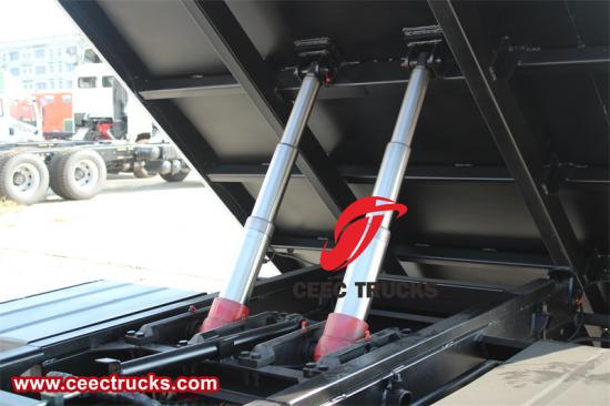 エンジンの動力は、高耐久性のギアボックスと車軸を含む耐久性の高いドライブラインを介して車輪に伝達されます。これにより、トラックは重い荷物を運び、過酷な状況でもスムーズに走行することができます。