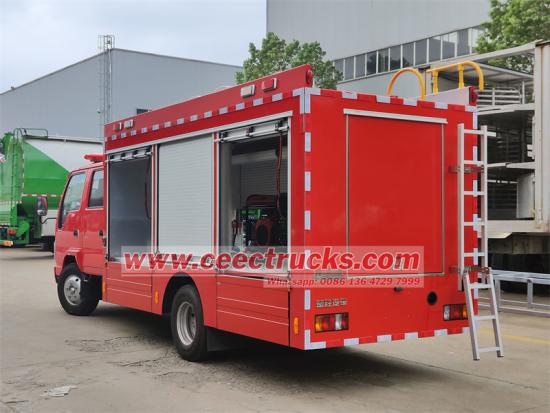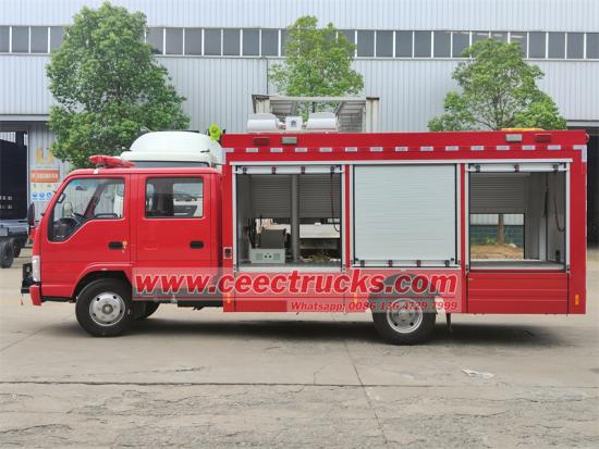 いすゞミニ型多機能救助消防車。2列運転席+4人乗り(SCBA4席を含む)の複列運転室を備え、出力88kW、120馬力の4KH1CN6LBディーゼルエンジンと、前進5速、後進1速のMSB5速マニュアルギアボックスを搭載しています。乗務員室後部は消防活動用に改造されており、乗務員数が増加し、出力が強く、機械性能も良好です。構造とレイアウトも合理的です。伸縮式昇降照明装置も搭載されており、操作とメンテナンスが容易で、実戦の火災要件を満たしています。