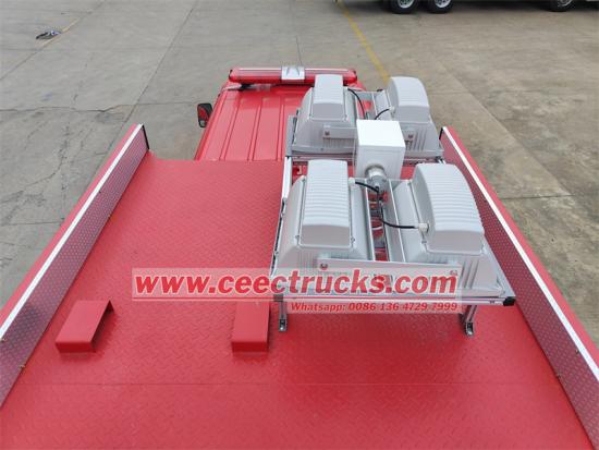 メインフレームいすゞクイックアタッチ消防車高品質の20#鋼材に二酸化炭素シールド溶接を施し、全体の骨格構造が強固で堅牢、かつ信頼性が高いことを確保しています。内部の装備ボックスは高強度アルミ合金プロファイルを採用し、メインフレームはスカート部で全面保護構造を採用し、フリップペダル構造は美しく信頼性の高いものとなっています。ボックス内面には、表面を覆い隠すための大きな模様の陽極酸化アルミ合金板を採用し、コーナーアルミエッジングなどの加工により、装備ボックスの性能を確保しながら、美しさと軽さを兼ね備えています。