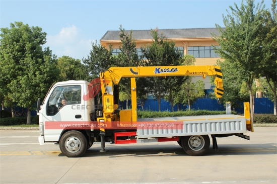 いすゞ NKR トラック搭載型クレーン(ローリー搭載トラック、ローダー付きトラック貨物、トラックシャーシ上のナックルブームクレーン、バッククレーン搭載トラック、クレーン搭載貨物トラック、ローディングクレーン付きトラック、ブームクレーン、ブームクレーントラック、多関節式クレーントラックとも呼ばれます)重い荷物を持ち上げ、積み込み、輸送、荷降ろしするために使用されます。