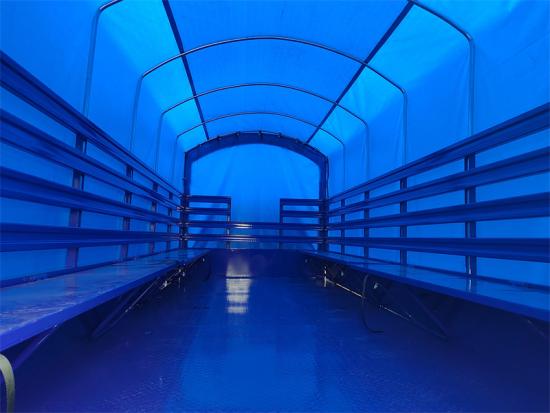 いすゞNPRシャーシをベースにしたソルジャーキャリアトラックです。4x4駆動方式を採用し、排気量5193ml、定格出力139kW/190馬力、最高速度110km/hの4HK1-TCG61直列4気筒ディーゼルエンジンを搭載し、機動性を確保しています。シャーシの前車軸は4トン、後車軸は7トンで、235/75R17.5のタイヤを6+1本装着し、標準的な積載量と柔軟性を備えています。アッパー車体寸法は4668×2150×1250mmで、普通鋼と木材の混合素材で、積載量は8000kgです。車体は青色に塗装され、窓と後部ドア付きの青色シートが装備され、車内には折りたたみ式の座席が備えられています。この兵員輸送車は、いすゞ製シャシーの信頼性の高い性能と、軍用車両の専用車体設計を融合させ、様々な軍用輸送・人員派遣任務に適しており、機能性と実用性の完璧な融合を体現しています。