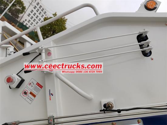 10cbm garbage bin,with 4 operation methodsいすゞ700P 10立方メートルゴミ圧縮車は、高効率、環境保護、多機能を融合した清掃車です。強力な4HK1 190馬力エンジンを搭載し、ユーロ6排出ガス基準に適合しているため、環境保護に配慮しながらも強力なパワーを確保しています。車両には10立方メートルの圧縮ゴミ箱が装備されています。キャブ内の電子制御ボックス、運転席側の手動操作レバー、テールゲート左右の電子制御ボックスと手動操作レバーなど、多様な操作方法により、柔軟で多様なゴミの積み下ろし機能を実現しています。