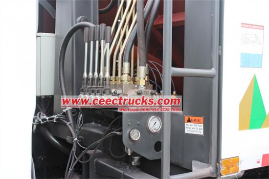 ——油圧システム:燃料タンク、オイルポンプ、多方弁、油圧シリンダー、パイプラインなどから構成されます。油圧は通常16Mpaに設定されており、動力取出装置を介してエンジンから動力を得て、積み下ろし、圧縮、持ち上げなどの動作を駆動します。