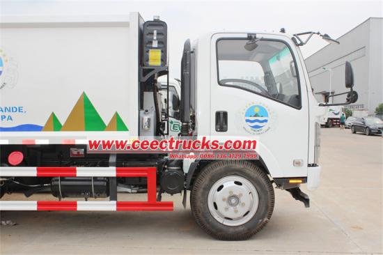 Isuzu rear loader truck with a flip mechanismいすゞNPR 10CBMゴミ圧縮車は、都市の廃棄物管理のために特別に設計された高効率の機器です。高度な圧縮技術を採用し、ゴミの量を大幅に削減します。輸送効率の向上、輸送回数の削減、運用コストの削減を実現します。いすゞNPRシャーシをベースに構築されたこの車両は、ゴミ収集車 190を搭載HP ユーロ6エンジンと6速トランスミッションを搭載し、力強い動力性能と安定した走行性能を実現。コンパクトなデザインと簡単な操作性により、 いすゞ10CBM油圧ゴミ圧縮機 都市や町を含むさまざまな環境でのゴミの収集と輸送に適しています。